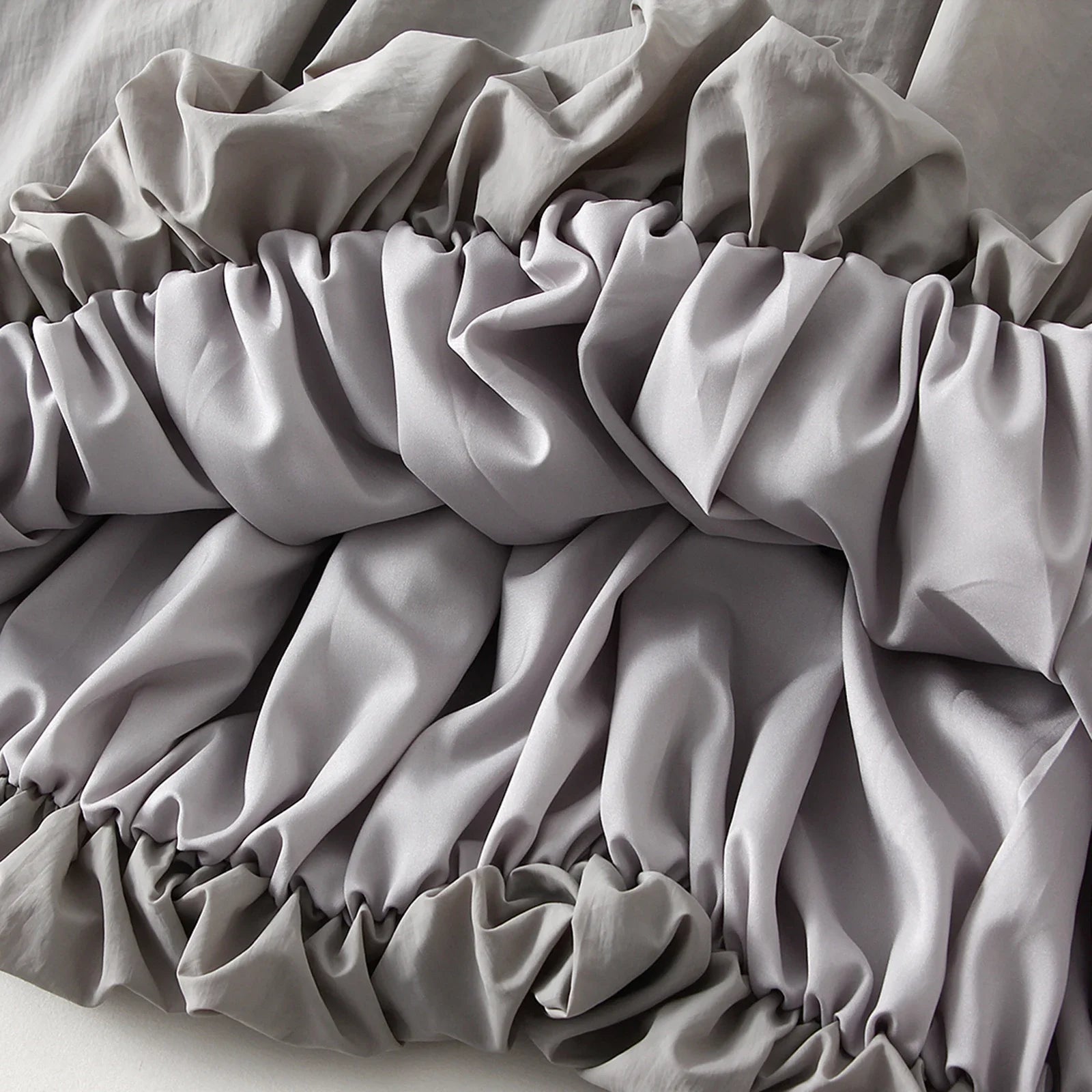 Combhasaki Women's Elegant Elastic High Waist Solid Color A-Line Pleated Puffball Hem Casual Flowy Balloon Bud Midi Skirts