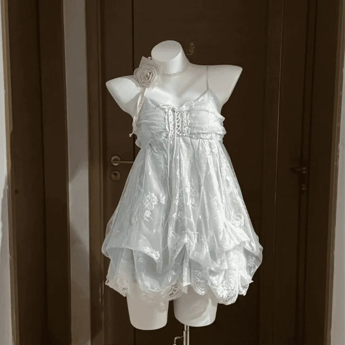 New Vintage Summer Women Sets Elegant Ruffle Lace Chiffon Design Mini Skirt Suit Fairy Female Sweet Korean Fashion Outfits 2025