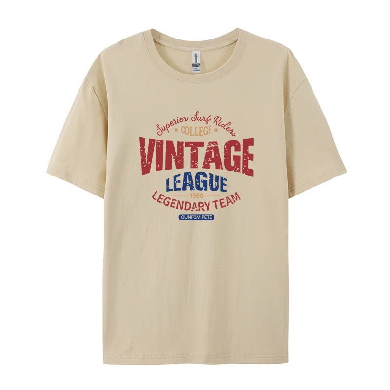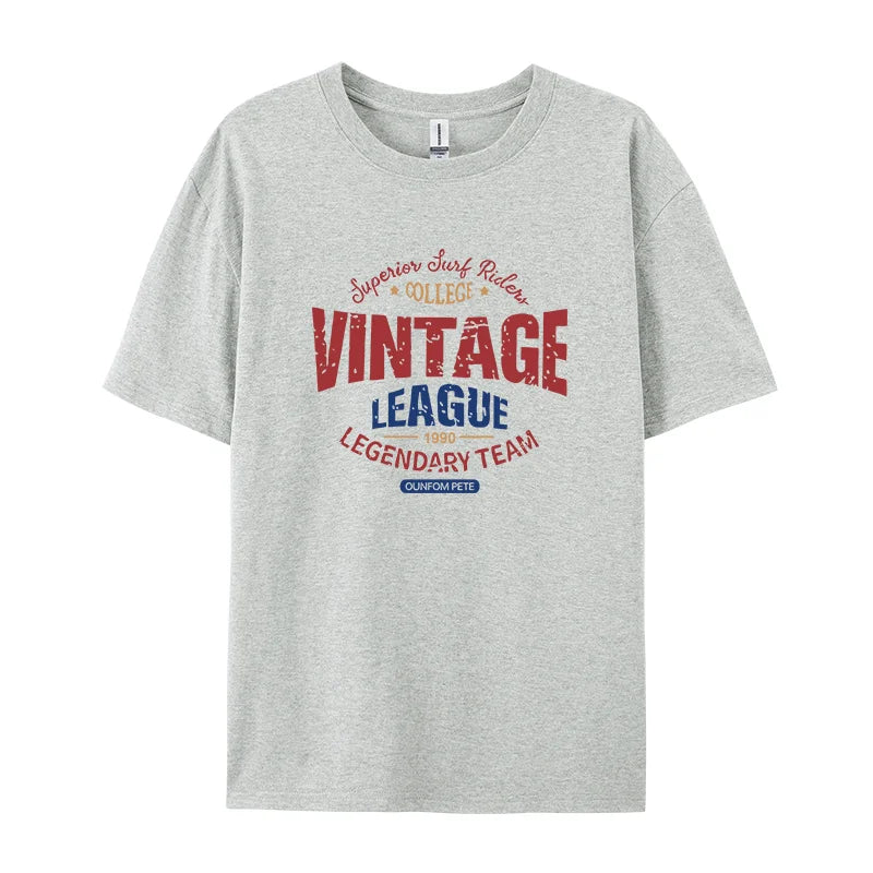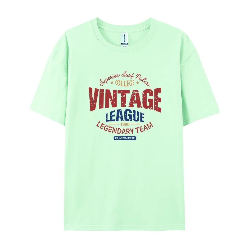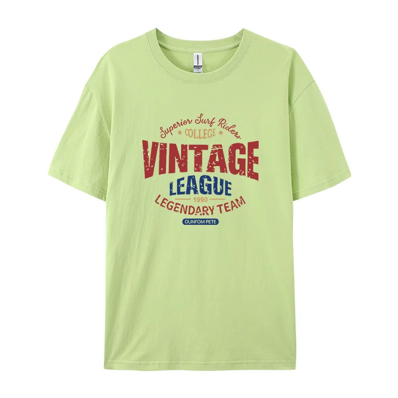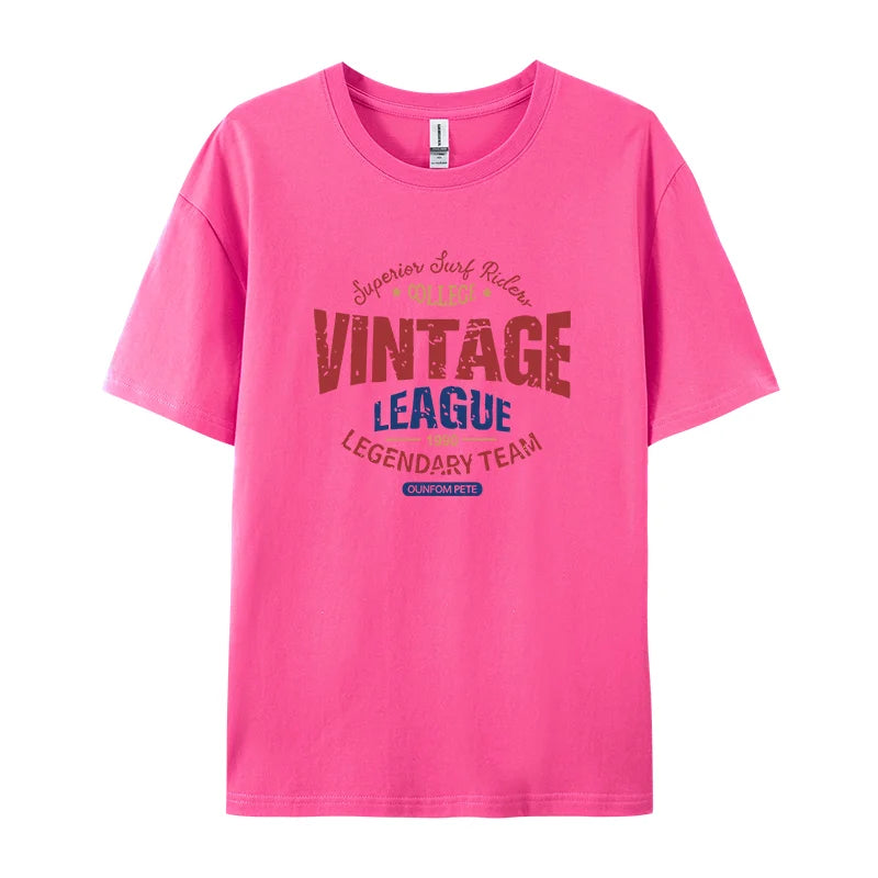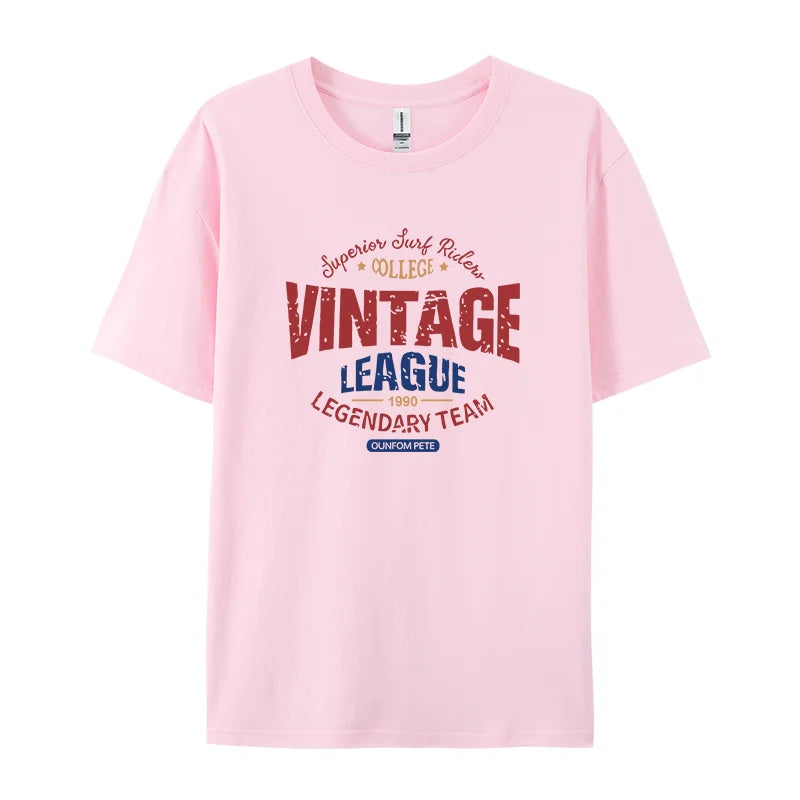 Vintage League Letter Print Womens T-Shirts Summer Fashion Cotton Tops Comfortable O-Neck Short Sleeve Soft Oversize Clothes