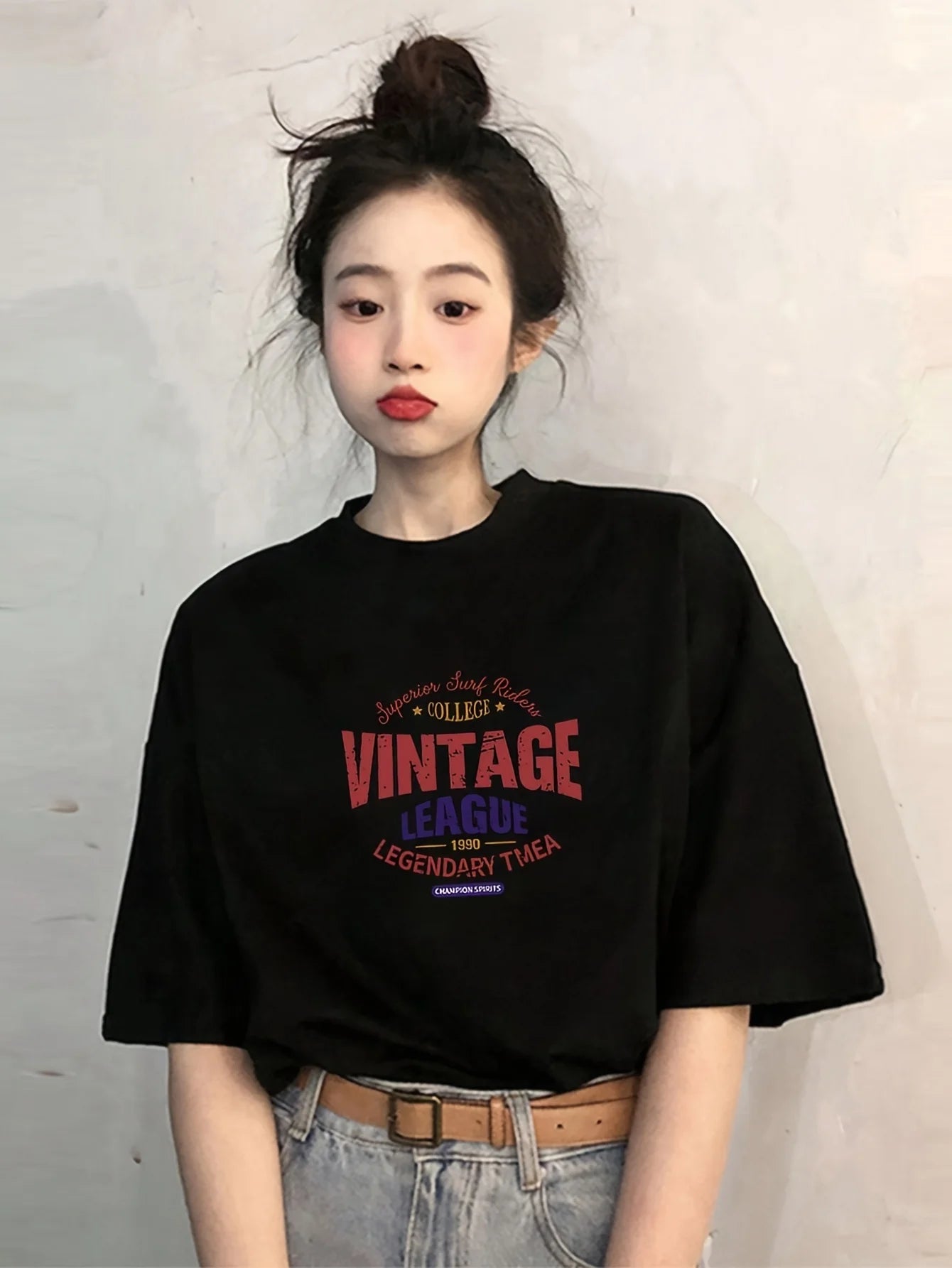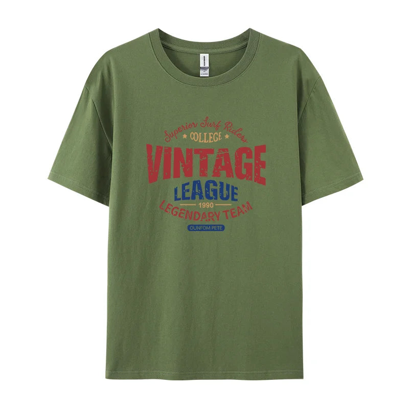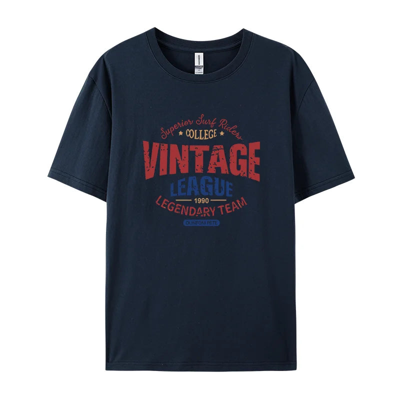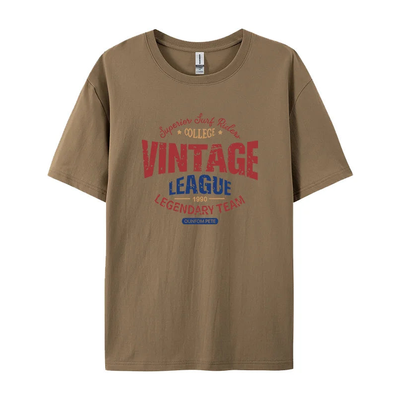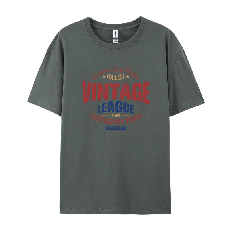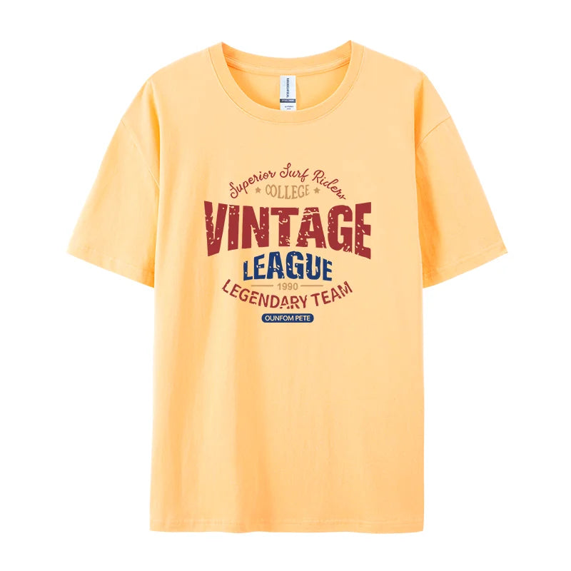 Vintage League Letter Print Womens T-Shirts Summer Fashion Cotton Tops Comfortable O-Neck Short Sleeve Soft Oversize Clothes